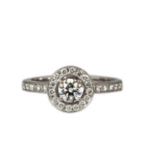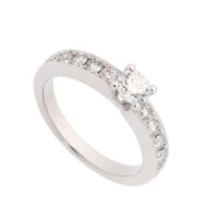 Solitario de oro banco de 18 quilates con diamante talla brillante de peso 0.34 cts. color H y pureza VS2