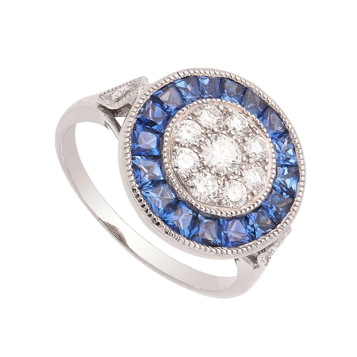 Anillo de oro blanco de 18 quilates con diamantes de peso total 0.34 cts. y zafiros de peso total 0.50 cts.