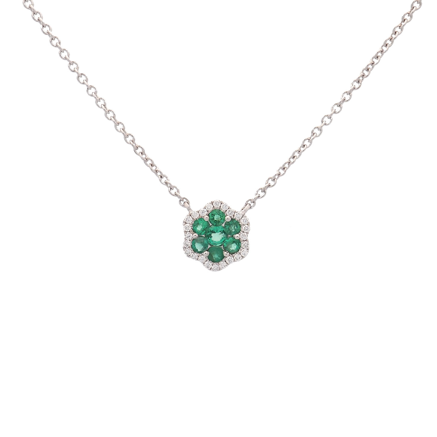 Colgante de oro blanco de 18 quilates con diamantes talla brillante de peso total 0.12ct. y esmeraldas redondas de peso total 0.35cts