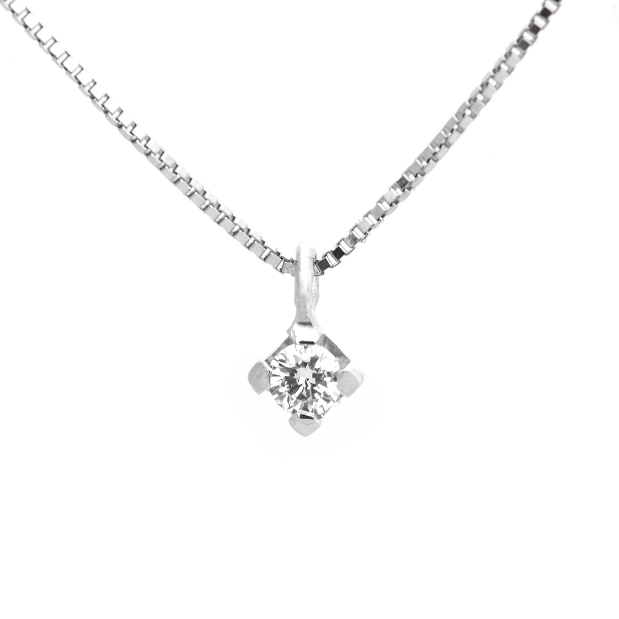 Collar de oro blanco de 18 quilates con diamante talla brillante de peso 0.20 cts.