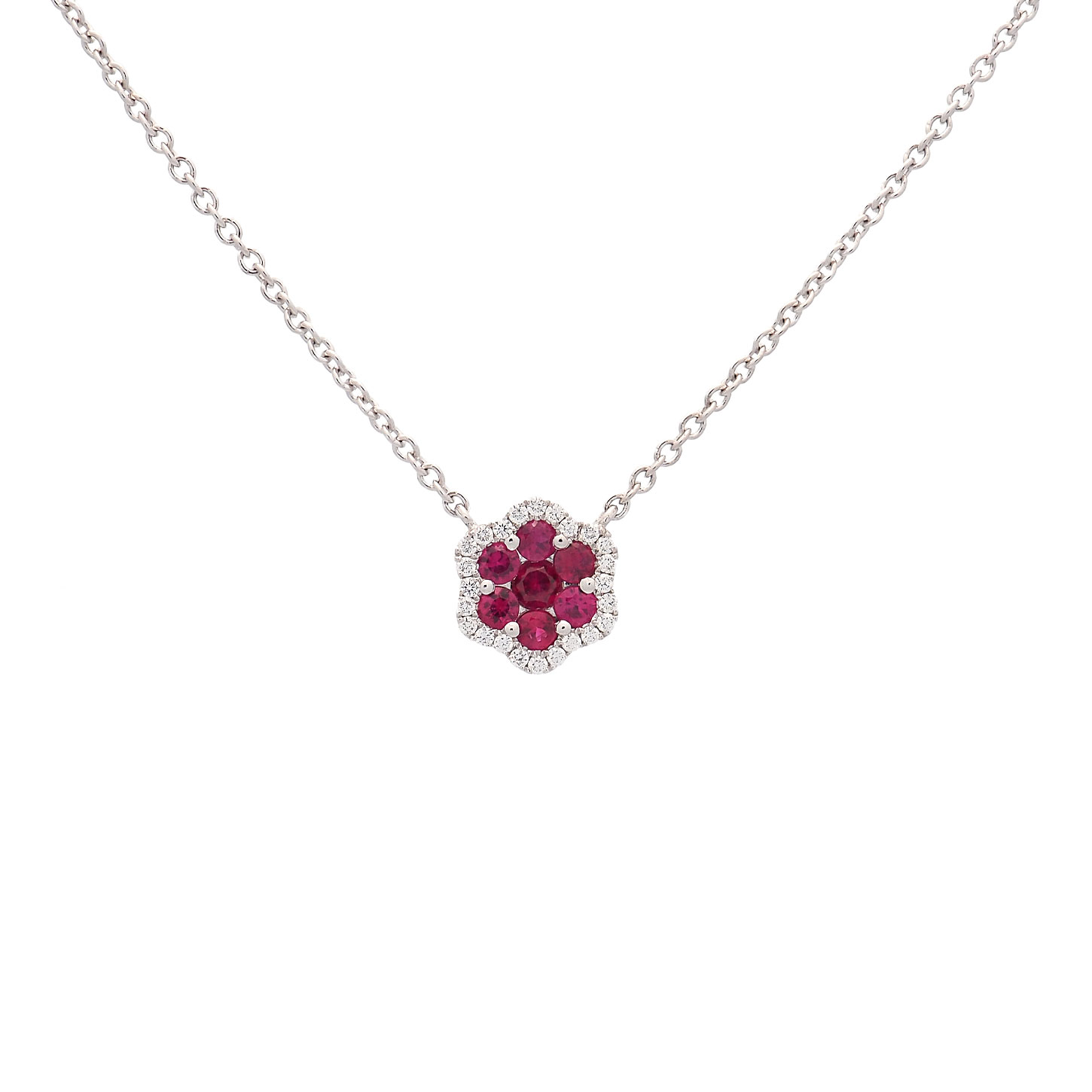 Collar de oro blanco de 18 quilates con diamantes talla redonda de peso total 0.12 cts. y rubies talla redonda de peso total 0.44 cts.