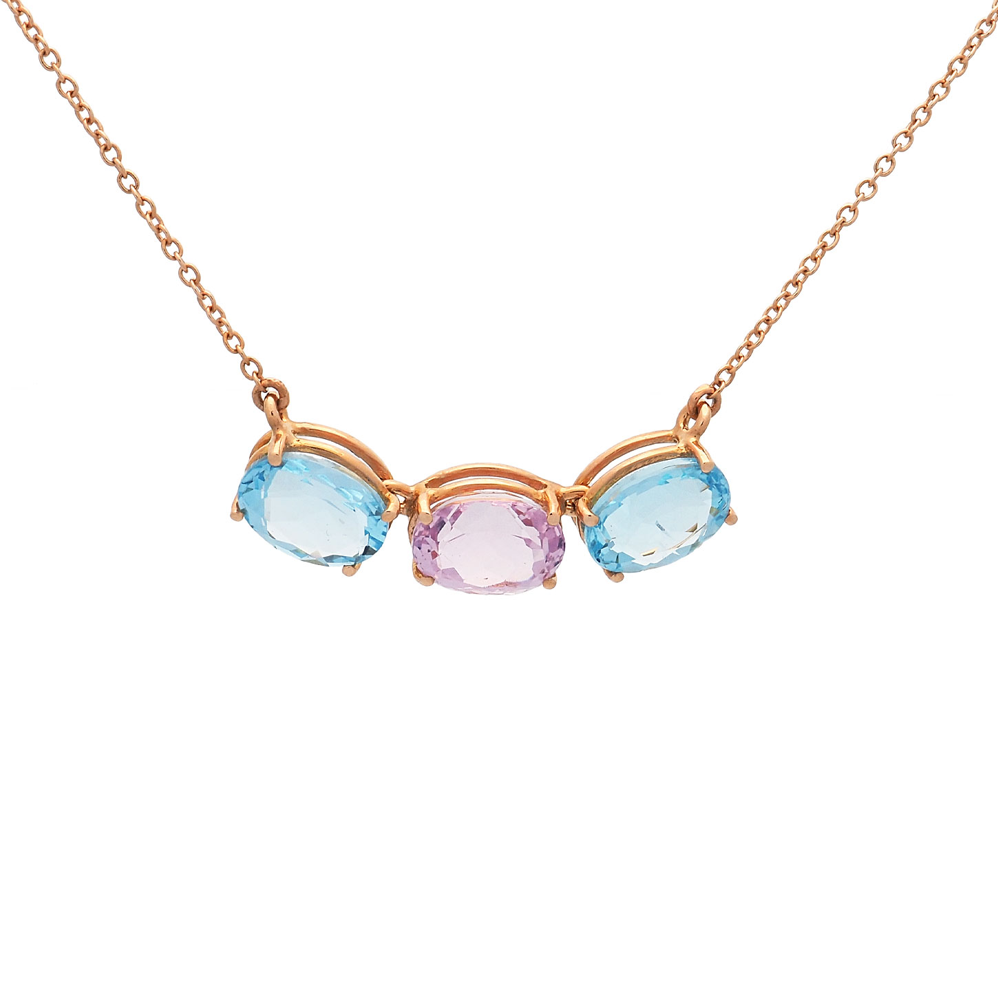 Collar de oro rosa de 18 quilates con topacios azules ovales y kunzita oval